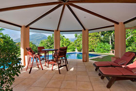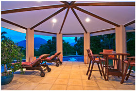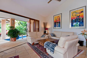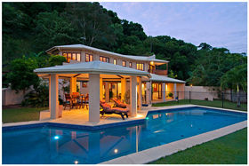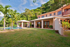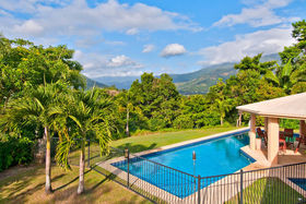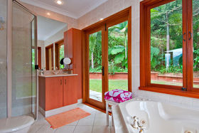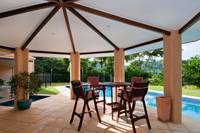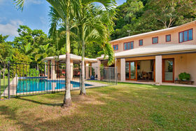 Like to Entertain? Well, entertaining downstairs would be a breeze in the spacious kitchen adjoining the living area which flows outside to generous patios, the large Pavillion with rainforest backdrop and conveniently located fourth bathroom for guests. Every day is a vacation with a sparkling 16m x 4.5m swimming pool in a tropical garden setting as lovely as this.