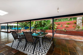 You will find peace and privacy when you arrive home to the last house in the street, tucked away on a double sized block. Forget about the rest of the world when you relax and unwind on your large back patio overlooking the pool and tropical gardens. This is one huge area ideal for large family gatherings and poolside parties for those special occasions. Inside you will discover a well designed functional home ideal for a growing family and then some.