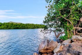 With the front yard so close to the water you could fish from it (with a good enough cast).